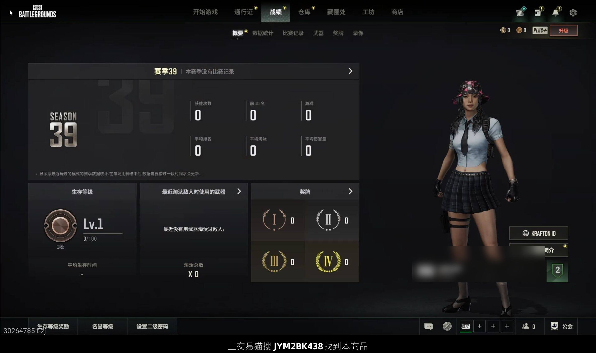 生存等级1 名誉等级2 载具1 枪皮17 1级汉娜成品