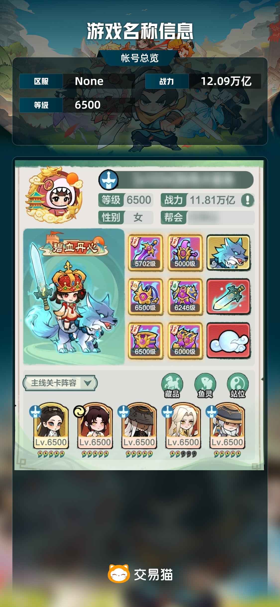 【区服 ,战力12.09万亿】1034服,6神兵,纯数字账号